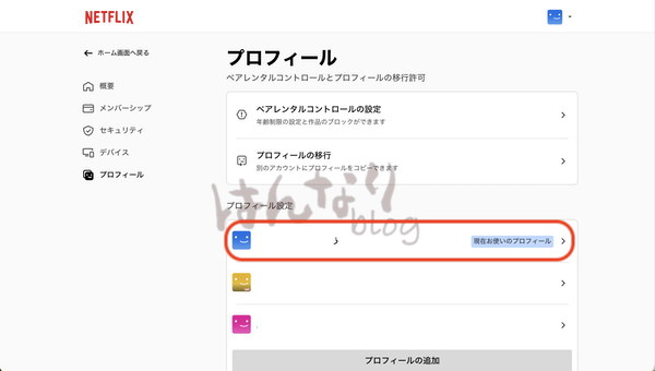 3.「プロフィール」ページから視聴するアカウントを選択