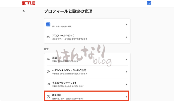 4.「プロフィールと設定の管理」のページから「再生設定」を選択